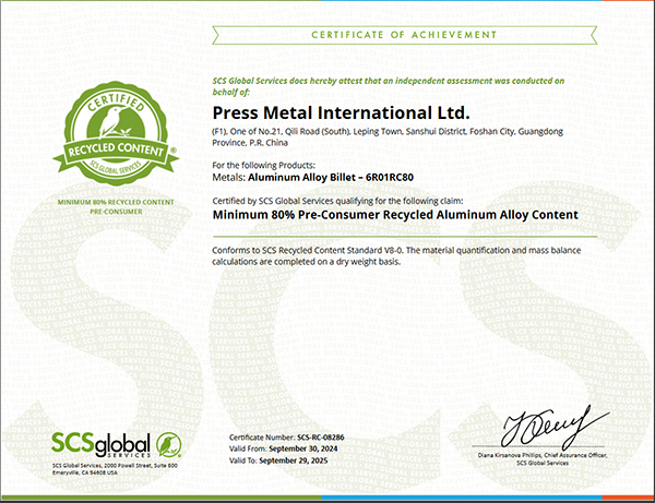回收鋁Intertek-RCV證書